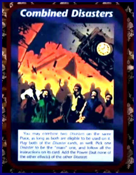 한카드에는 두 개의 쌍둥이빌딩이 그려져 있는데, 그 빌딩 중 오른쪽에 있는 빌딩에 무엇이 충돌한 듯이 엄청난 화염에 휩쌓여 있는데, 이 그림은 바로 9·11테러를 묘사한 카드이다.