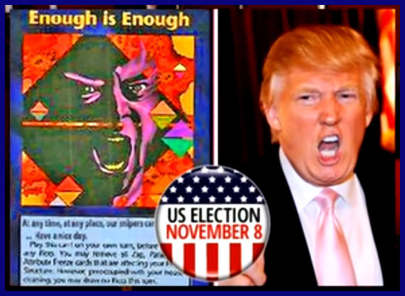 그래서 사람들은 이 카드를 '트럼프카드'라고 말하고 있고, 이 카드의 이름은 'Enough Enough'라고 쓰여져 있는데, 이것은 ' 계속 이대로 놔둘 수는 없어!'라는 뜻이다.