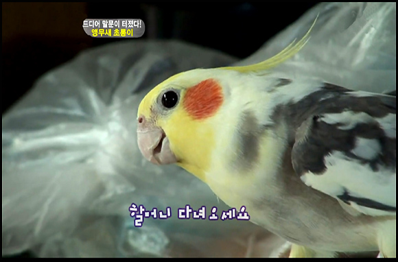 할머니가 한번도 가르쳐주지 않았는데도 불구하고, 앵무새 초롱이는 마치 사람처럼 능숙하게 상황에 맞는 말을 정확히 구사해서 할머니도 깜짝 놀랐다고 합니다.