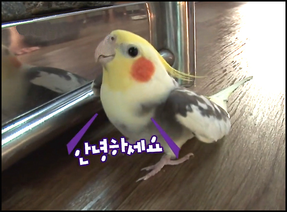 이처럼, 앵무새 초롱이는 제작진이 자신을 보기위해 방문하자, 인사를 하면서 동시에 애교(이쁜짓)까지 부리고 있는 것입니다. 정말. 너무 귀엽지 않습니까?